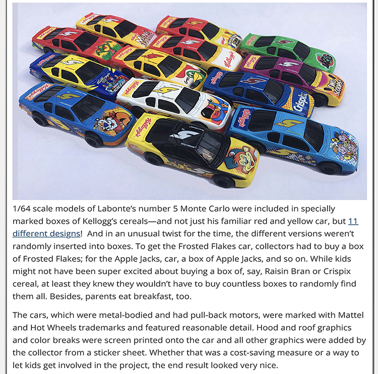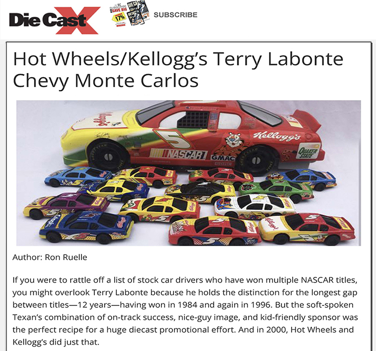 Ron Ruelle enjoyed writing this piece about a hard to complete set of Terry Labonte Hot Wheels cars for DiecastX, a magazine and website about model cars, usually high-end, expensive collectibles. (Please note: This article is an archived version. You can see the original here.)