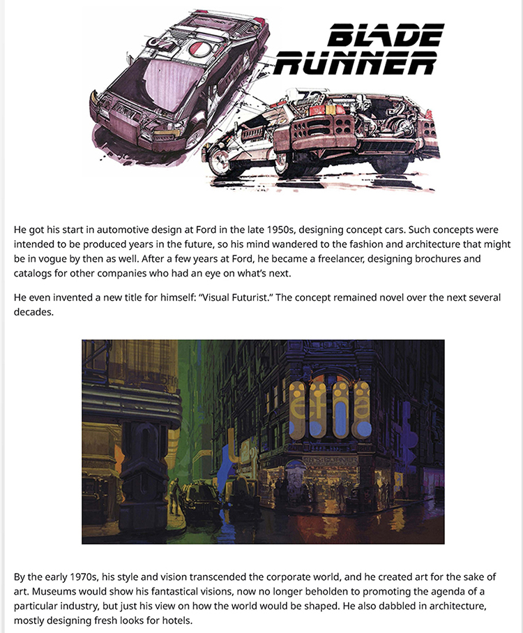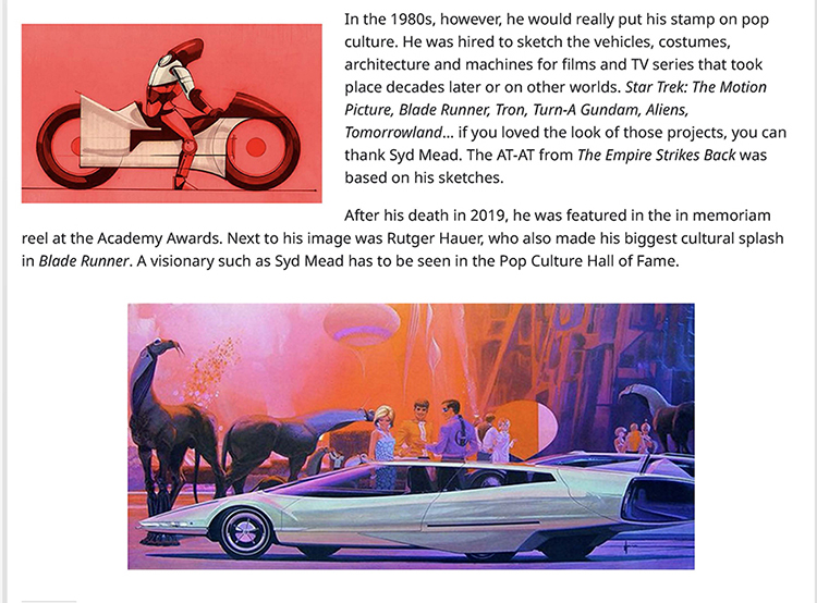 Future of Pop Culture Hall of Fame Includes Syd Mead