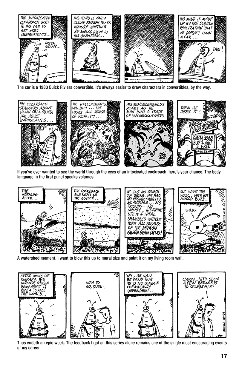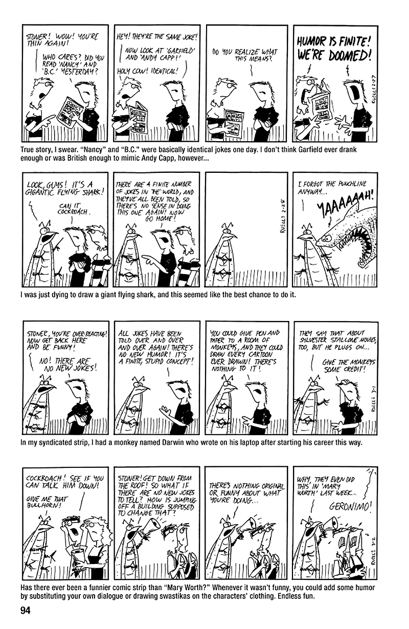Ron Ruelle created a daily comic strip for the Daily Beacon at the University of Tennessee for four years. While the art is crude (and the humor often more crude), there is a lot to enjoy here. These are some pages from his published collection of these strips, available here.