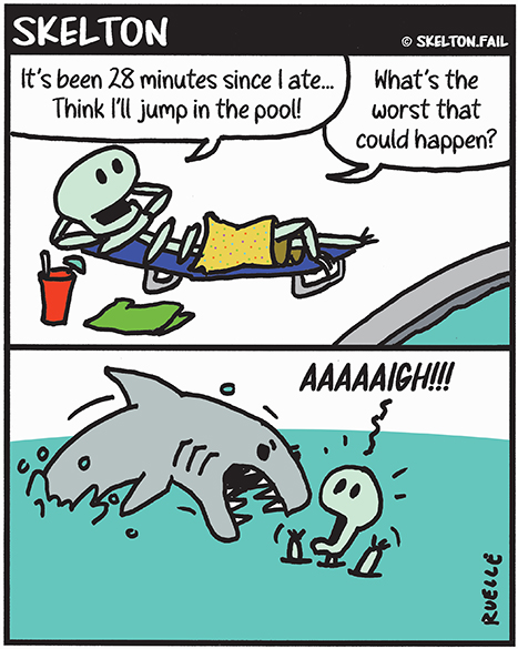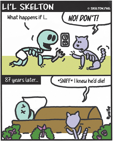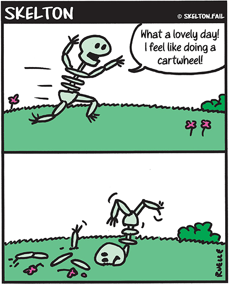 Skelton is a new comics project by Ron Ruelle and Nathan Greyman! Skelton is a happy-go-lucky skele-guy who makes bad decisions, achieving mostly bad results. The art is crude and so is the humor!